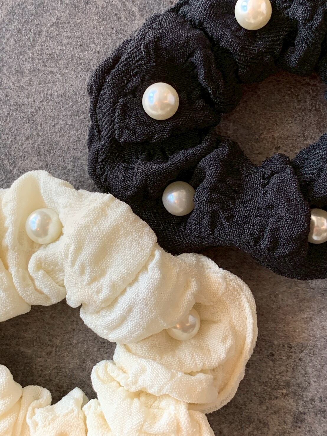 洗練されたデザインのパール付きシュシュで